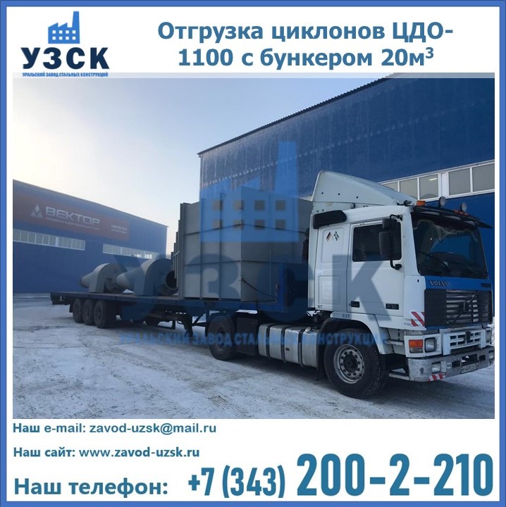 Циклоны ЦДО-1100 с бункером на 20 кубов были отгружены в декабре 2018 года в г. Новосибирск Рязань.