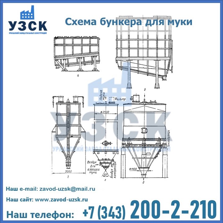 Завод «УЗСК» в Рязани проектирует, производит и поставляет целевое оборудование, в том числе, бункеры для хранения муки и прочих сыпучих материалов.