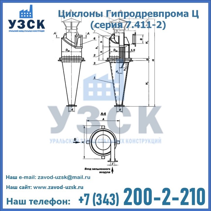 Циклоны Гипродревпрома Ц (серия 7.411-2) высокого качества можно купить в компании «УЗСК» в Рязани. Наши специалисты предоставят всю необходимую информацию информацию и помогут с выбором модели циклона. Подробные технические характеристики, конструкцию, параметры, ассортимент и стоимость продукции можно также найти на сайте УЗСК.