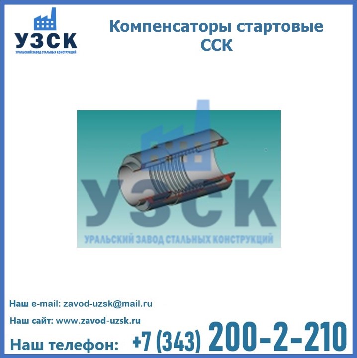 Стартовые компенсаторы, при прокладке прямолинейной системы труб, устанавливается через интервалы, установленные в проекте. В готовую траншею по всей протяженности системы, кроме участков, оборудованных ССК, засыпается грунт. В процессе первоначального нагревочного пуска трубной системы происходит удлинение труб, в результате этого сильфоны стартовых компенсаторов сжимаются. Внешняя стальная оболочка компенсаторов, после нагревания, приваривается. Трубы таким образом фиксируются в грунте, а последующие температурные перепады трансформируются в допустимые стабильные напряжения. Уральский Завод Стальных Конструкций предлагает готовые изделия, а также оборудование под заказ. Наш завод располагает всеми необходимыми возможностями для производства нестандартных компенсаторов ССК. Завод «УЗСК» предлагает большой выбор качественных и надежных сильфонных стартовых компенсаторов, полностью укомплектованных и готовых к эксплуатации. Мы гарантируем соответствие нашей продукции всем требованиям ГОСТ и ТУ, износостойкость и высокую производительность. Наше предприятие поставляет и производит оборудование, имеющее длительную гарантию и большой эксплуатационный ресурс. Если вы хотите заказать сильфонные компенсационные устройства ССК или другое оборудование с доставкой, наши специалисты помогут рассчитать стоимость транспортных расходов и организуют перевозку товара. Вы можете оформить заказ на продукцию на нашем сайте в Рязани, для этого достаточно заполнить форму обратной связи.